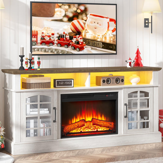 Tenalic Fireplace TV Stand with LED Light for 65 Inch TV, TV Console with Electric Fireplace, Console Entertainment Center Television Table for Living Room or Bedroom, White+Brown