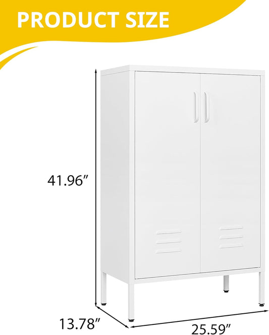 Tenalic Metal Storage Cabinet Small Cabinet with 2 Doors Office Cabinet, 41.96" H Steel Cabinet with Adjustable Shelve, Cabinet for Garage, Kitchen, Office, Living Room-White